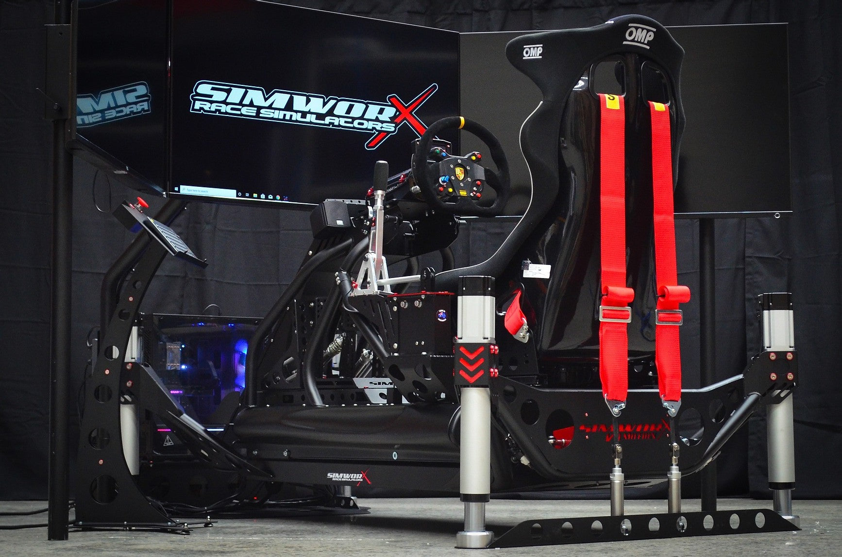 This Simworx SX02 2 Motorsport Full Motion Simulator stands at full attention in our dedicated sim room.